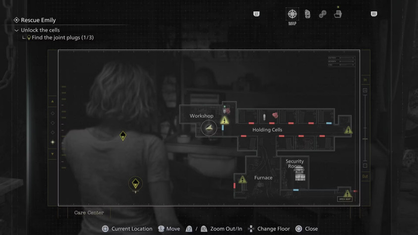 Играя за Грейс, отправляйтесь в подземную часть комплекса и найдите помещение с двухъярусными кроватями. Вход в эту комнату расположен напротив котельной и совсем рядом с комнатой охраны, где находится точка сохранения. Чтобы попасть внутрь, потребуется подать питание и открыть дверь в коридоре при помощи одного из соединительных разъёмов. После этого осмотрите телевизор — фигурка стоит прямо на нём.