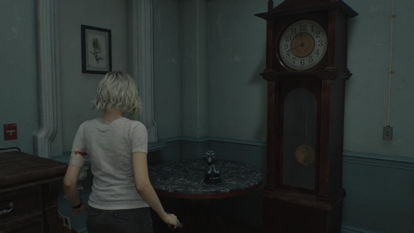 Продвигаясь по восточному крылу, идите по коридору от входа в изолятор и пройдите мимо двери зала ожидания справа. Дальше будет лестница, ведущая к кабинету главного исследователя. У её основания, на небольшом столе, стоит очередная фигурка.