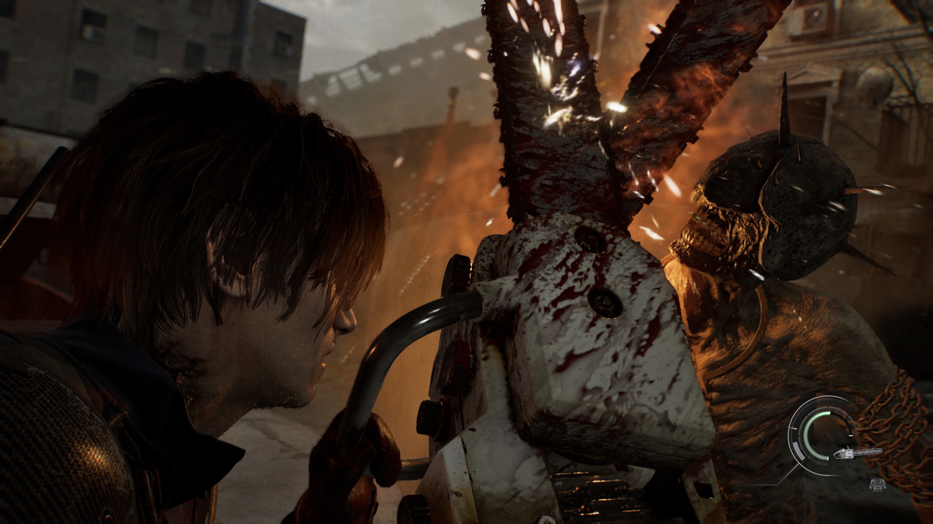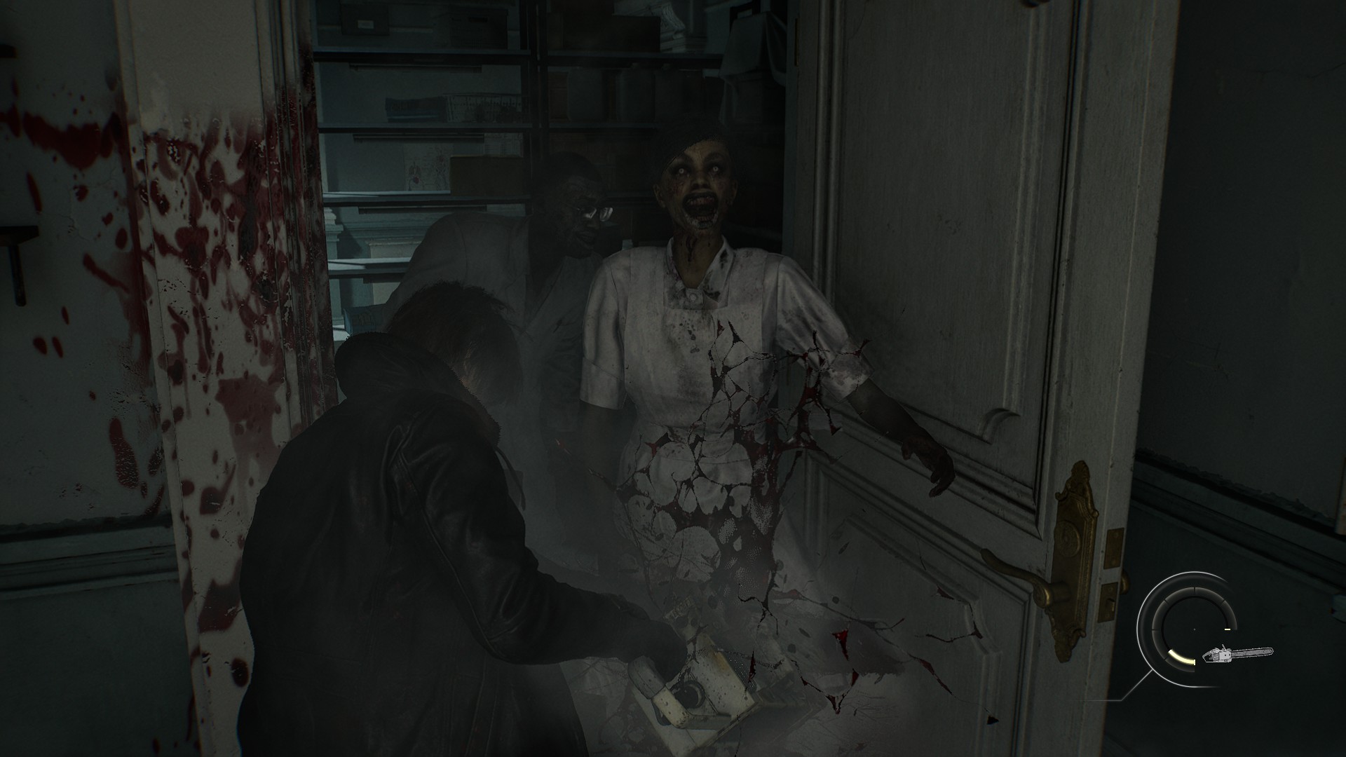 50-летний Кеннеди невозмутим и бесстрашен — особенно чётко это видно на контрасте с пугливой Грейс. Битвы в его исполнении — это настоящая феерия жестокости: столько крови из врагов, кажется, не выливалось ещё ни в одной «Обители зла». За это стоит сказать спасибо топорику Леона — вспомогательному оружию, которым герой беспощадно добивает врагов.