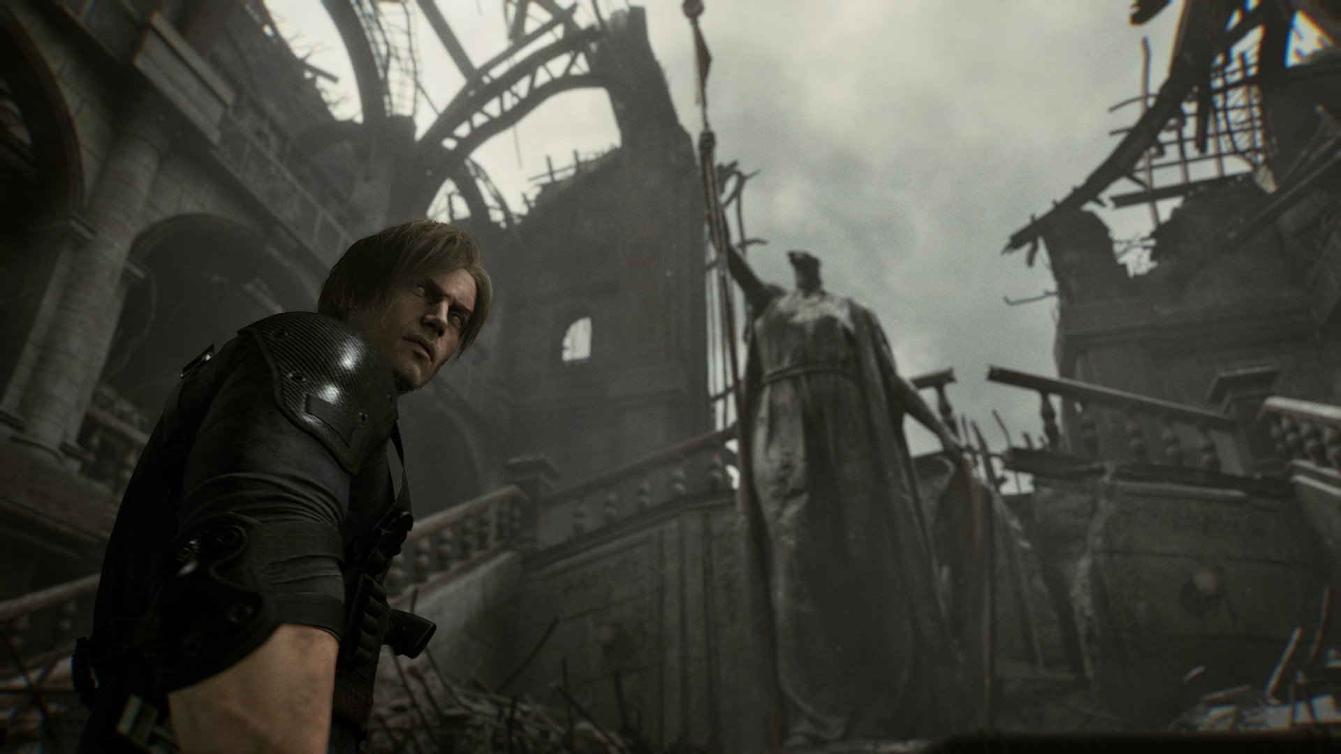 Я пишу это не без удивления, но на мой взгляд, игре всё равно как-то удаётся вывезти свою тему и эмоциональный стержень. Это же реквием - это взгляд на события прошлого, на трагедию Раккун Сити, на то, как это изменило героев и мир вокруг, и на то, какая невероятная жестокость была сотворена с ними и всеми, кто погиб тогда. Добавить к этому зомби, которые даже не пытаются заигрывать с темой "А вдруг человек внутри всё ещё в сознании?" - в этот раз мы знаем наверняка, что это так. То, насколько игра на этот раз сопереживает мукам зараженных, как это пересекается с темой игры и конфликтом Леона. На мой взгляд, игра проваливается по многим пунктам в сюжете, но вот этот, главный - она вытягивает с удивительной уверенностью.