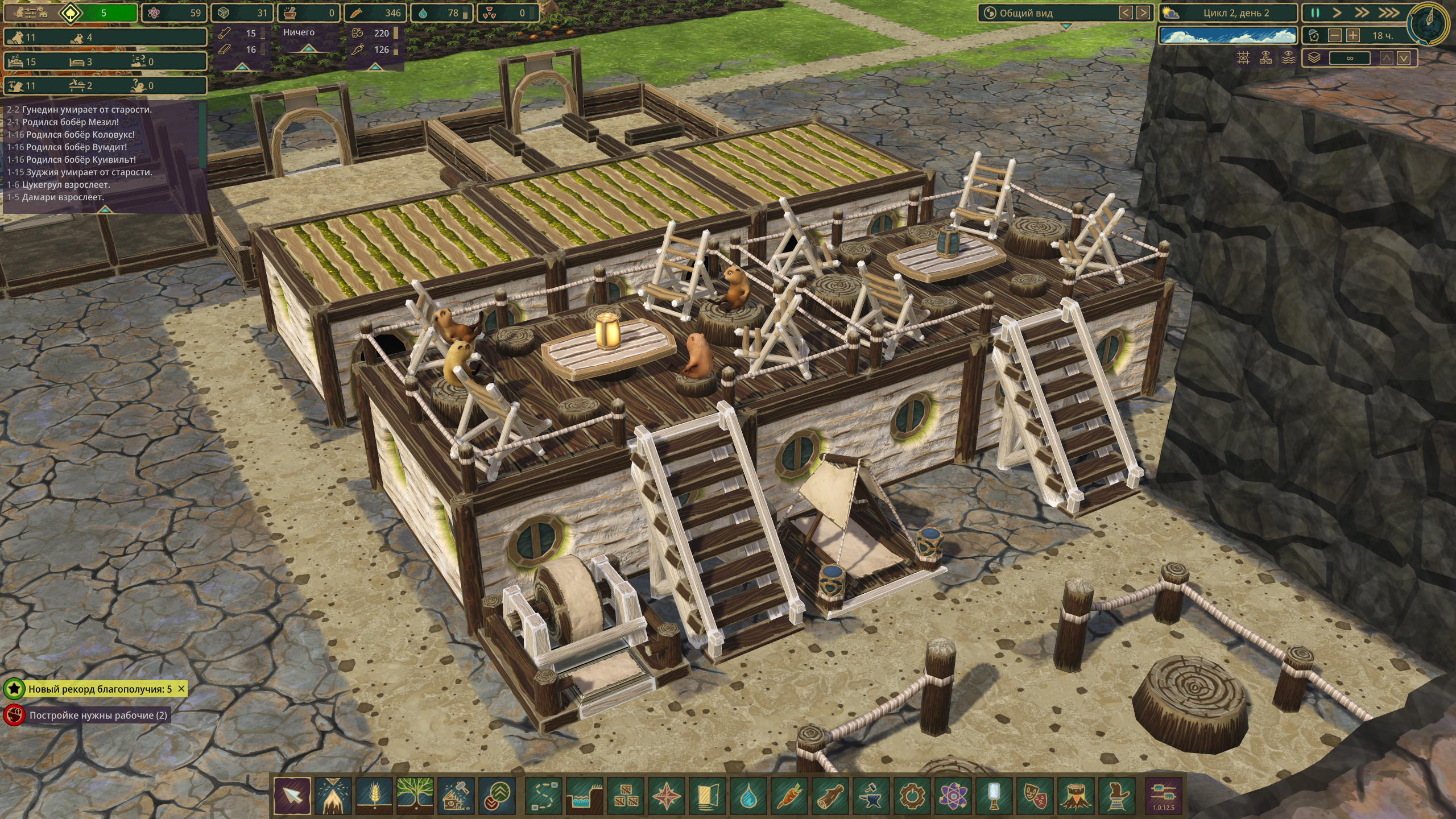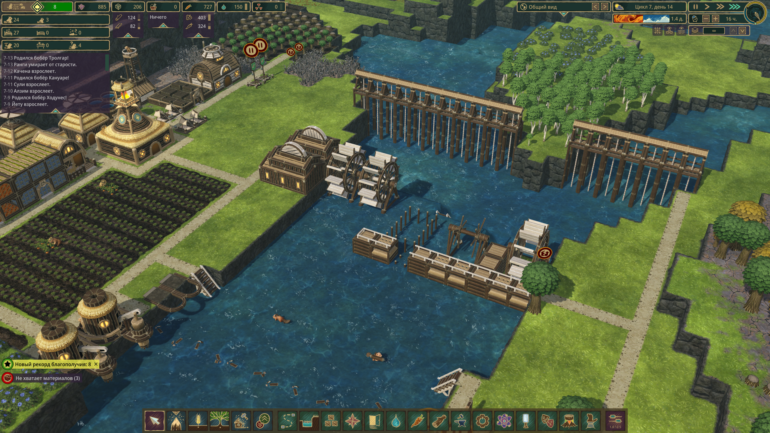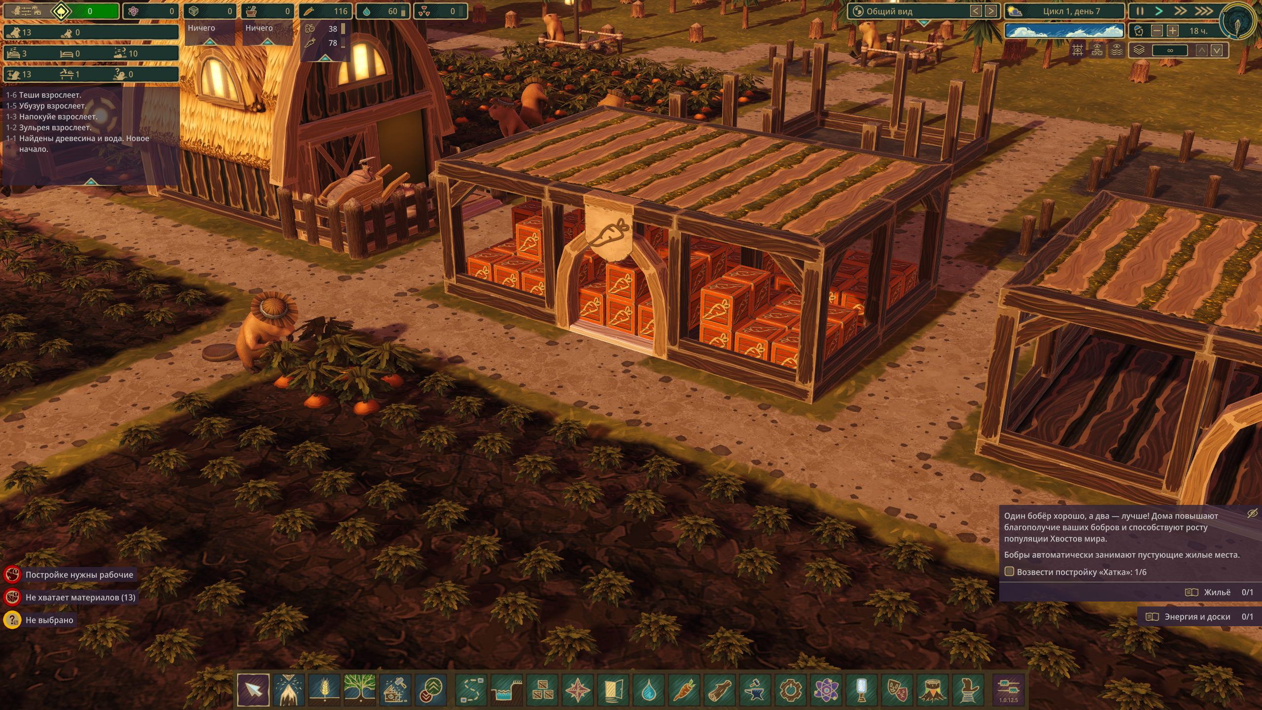 Всё это со временем превратит некогда крохотную деревню в утопию, где бобры занимаются наукой, пока роботы и автоматизация делают всё остальное. И во всём этом невероятно увлекательно копаться самостоятельно, без подсказок или гайдов, чтобы затем наслаждаться плодами своих трудов или просто созерцать красивые закаты и укрощённую природу.