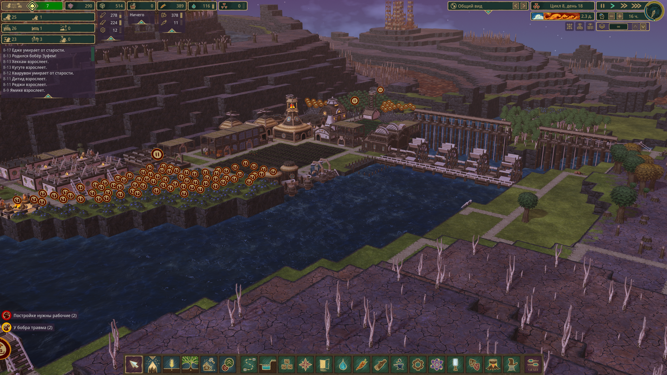 И все эти задачи тесно переплетаются друг с другом, делятся на этапы и зависят от внешних факторов (некоторые постройки лучше возводить в засуху, когда зараженной воды нет). А наличие технологического древа, скорее, только ограничивало бы или замедляло развитие этих направлений. Открывай то здание, которое тебе наилучшим образом подходит в текущий момент - вот и вся наука.
