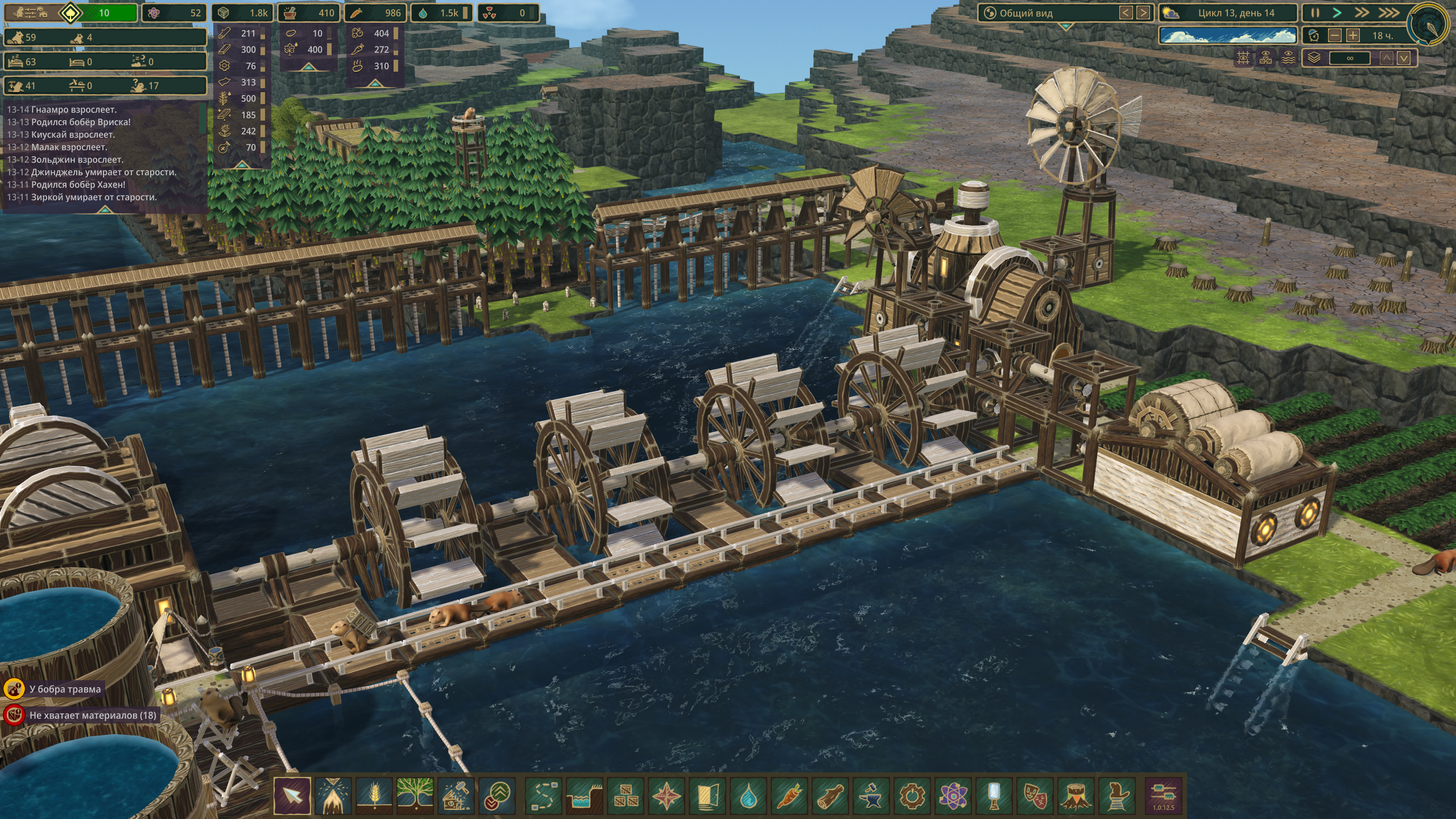 Timberborn — не хардкорный градострой, где каждая минута на счету, а проблемы нарастают как снежный ком. Нет, это невероятно приятное развлечение, способное затягивать и незаметно съедать кучу времени. Ведь один домик влечёт за собой другой, затем будут обещания пойти спать после строительства дамбы, а потом в голову приходит ещё миллион идей по улучшению бобрового городка.
