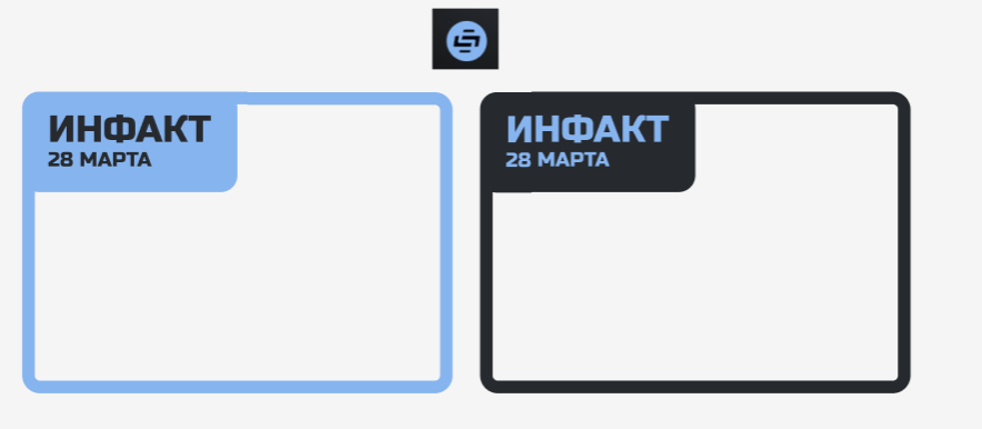 Мне кажется, было бы прикольно, если цвета символизировали авторов, что вещают, у нас же сейчас два ведущих. У них вот логотип для инфактов поменялся, он имеет два цвета: близкое к голубому и чёрному. Для одного ведущего: голубая рамка с чёрным текстом, а для другого: голубой текст с чёрной рамкой. Хз, как-то так: