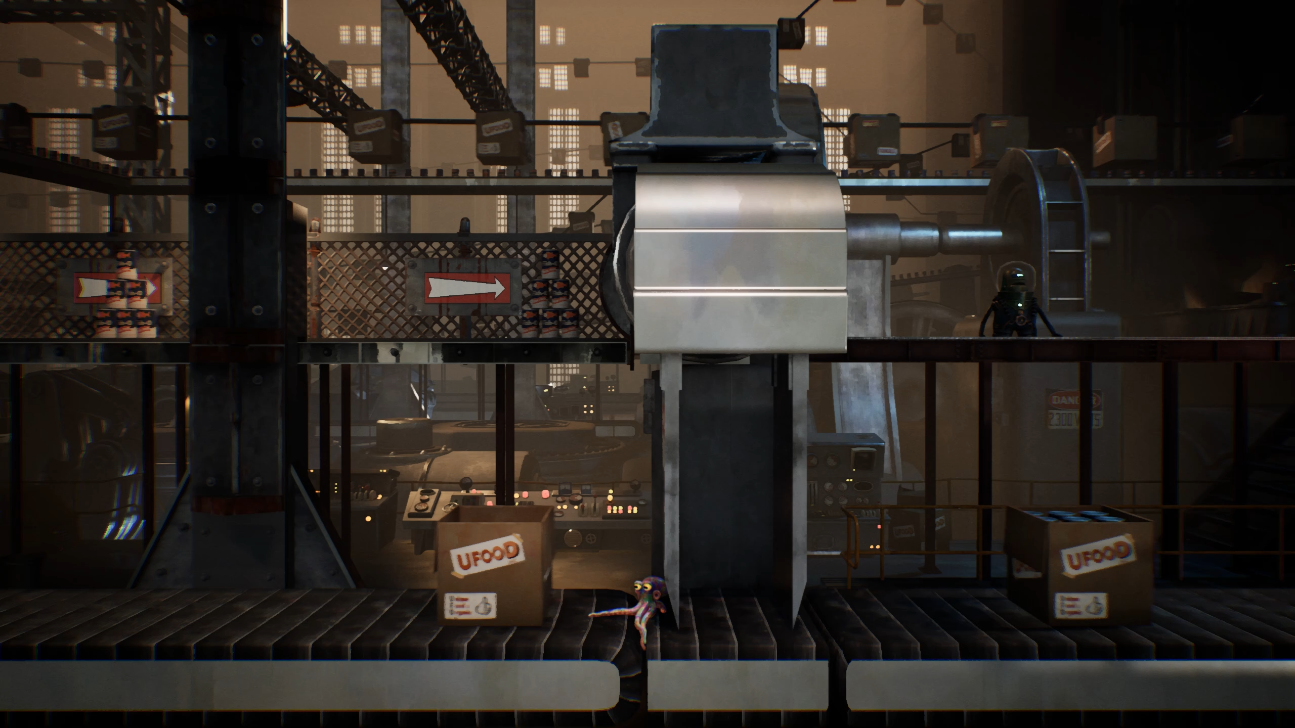 И чем дальше осьминожка заходит на территорию врага, тем сложнее становится его приключение. Крысы и чайки сменяются роботами и пришельцами — приходится использовать камуфляж, прятаться в вентиляциях, отвлекать врагов шумом и прятаться по коробкам в лучших традициях Солида Снейка.