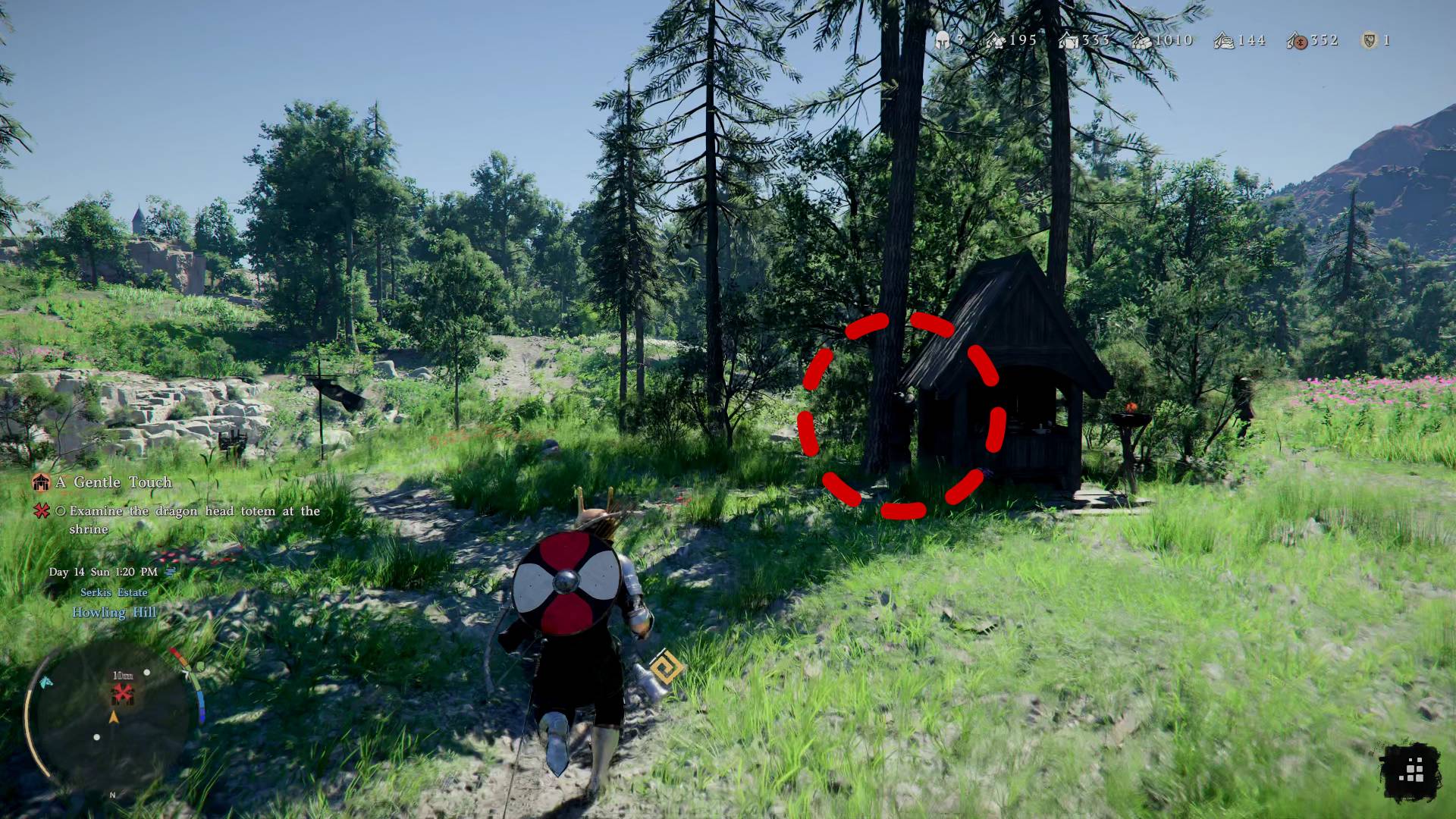 Вернитесь на Волчий холм и осмотрите тотем дракона у святилища. Рядом лежит письмо — прочитайте его через инвентарь, используя CTRL. Затем откройте карту, выберите Волчий холм и перейдите в список заданий. Найдите пункт «Расширение лагеря на Волчьем холме», назначьте Люка и Рональда и подтвердите выбор клавишей F. Если ресурсов хватает, процесс начнётся.