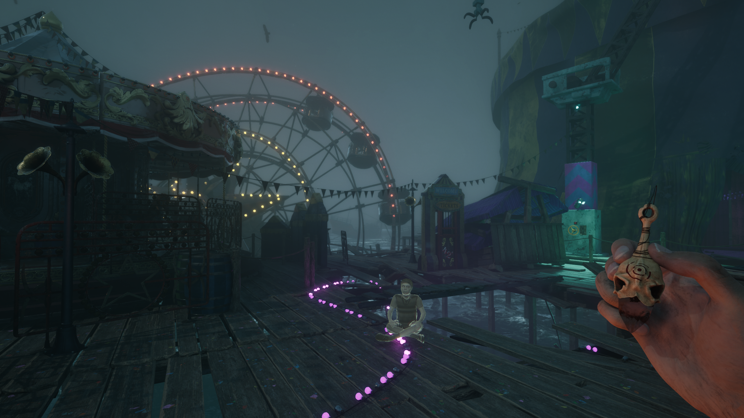Добравшись до центра развлечений, я невольно начала сравнивать игру с Alan Wake II, вспоминать свои ощущения и поняла, что та пугала меня вовсе не скримерами или врагами. Куда страшнее оказалось предвкушение опасности — уже в паре шагов от безопасного Уотери сгущается туман, наползают сумерки, а из темноты слышатся шорохи и жуткая музыка местных каруселей. За все шесть часов прохождения The Occultist подобное чувство тревоги вселить так и не смогла — здесь каждая зона видится безопасной и стерильной площадкой для решения пазлов.