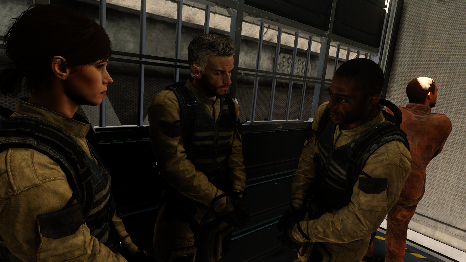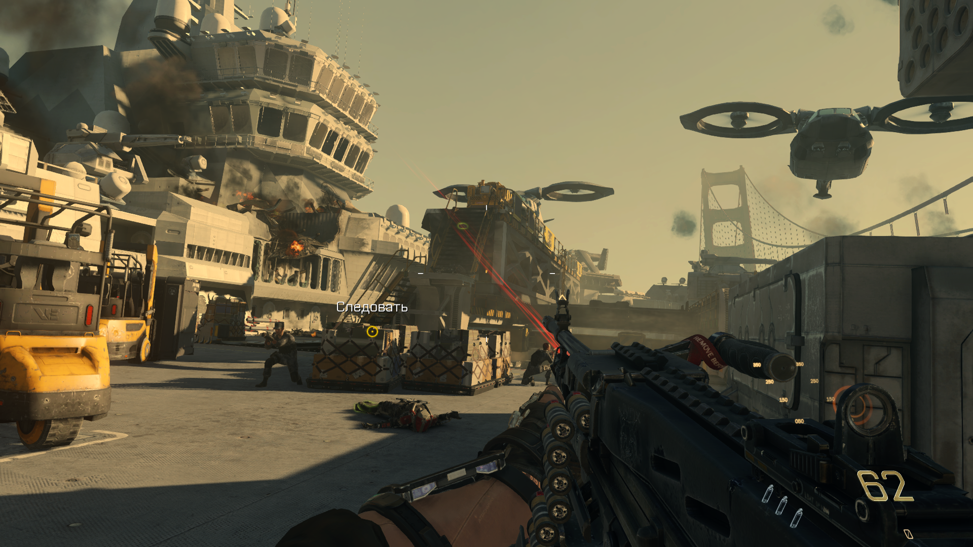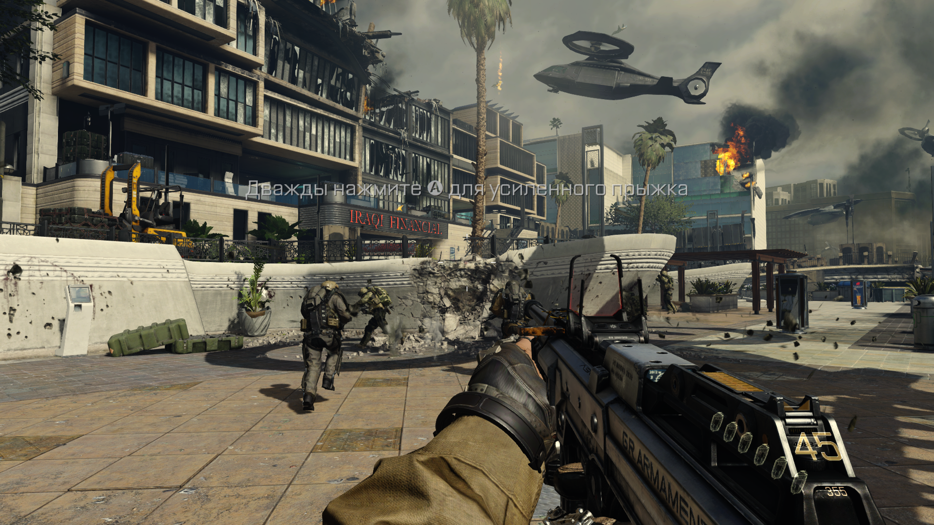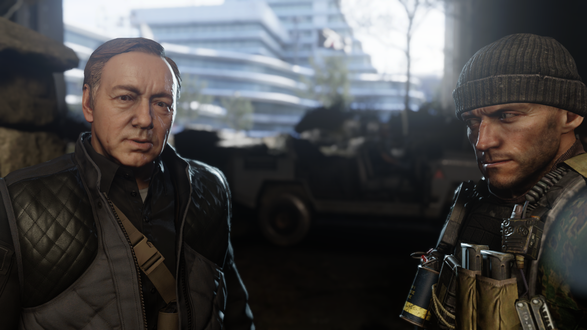С похорон товарища (тот самый меметичный press F to pay respects) есть шикарный переход на первое задание. Когда мы держим визитку Атласа, гремит гром и вот мы уже на задании по освобожению заложников.