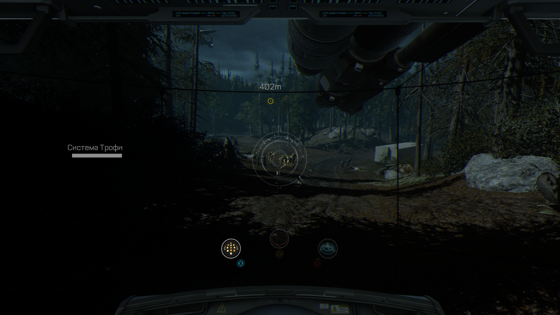Разъезжаем на похищенном танке по ночному лесу.