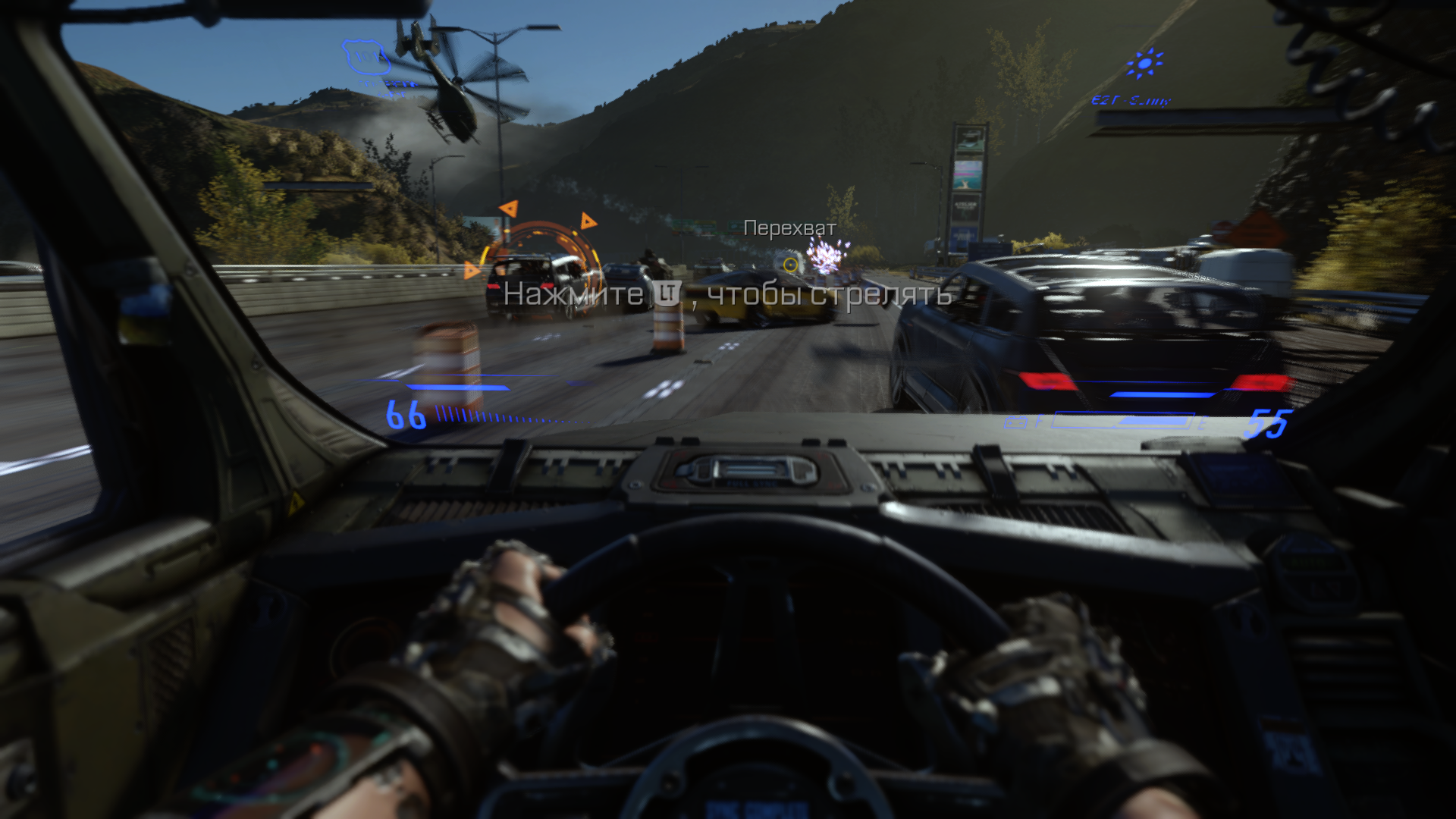 Одна из первых - это преследование террорисов на шоссе где-то в Африке. Перебегаем дорогу, пытаясь не попасть под автомобили и вражеские пули. Запрыгиваем на крышу автобуса, отстреливаем плохишей, пока не добираемся до фургона.
