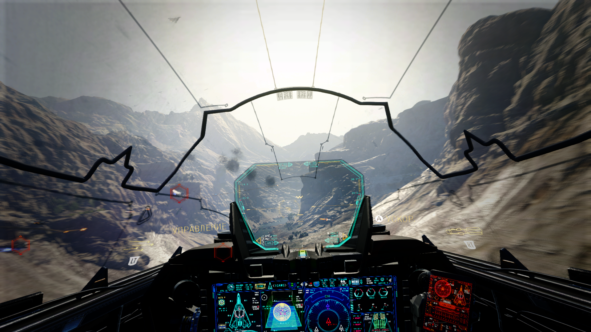 Летаем по ущелью, пытаясь не врезаться в скалы.