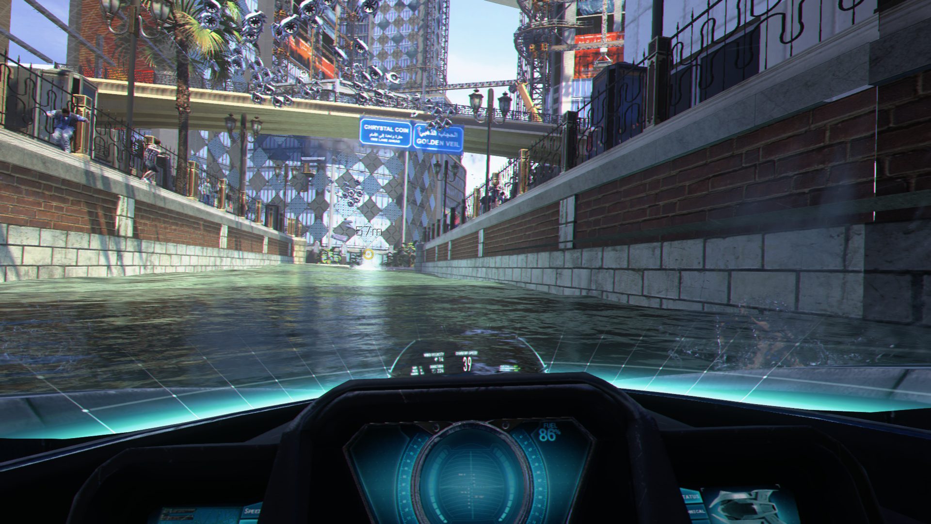 Катаемся на катере по гавани, подныриваем уходя от столкновения и ракет.