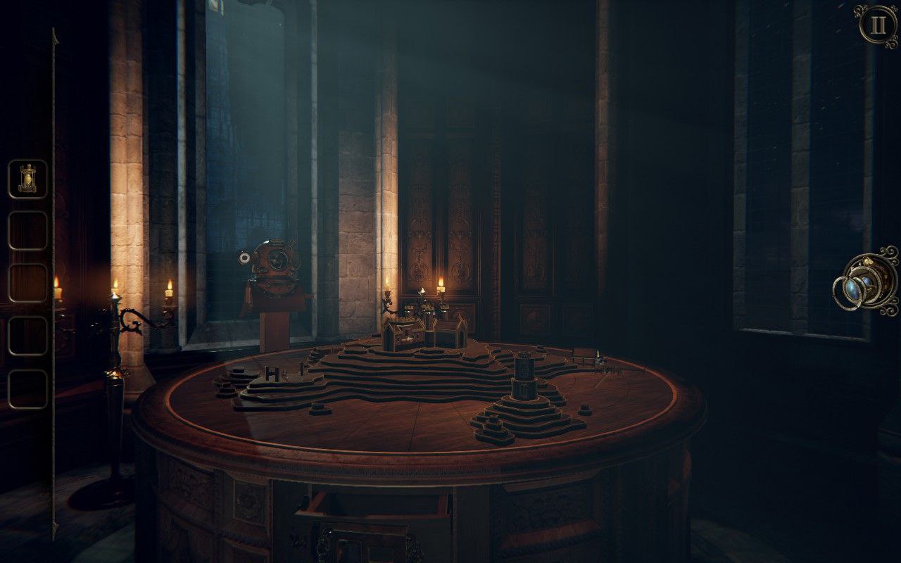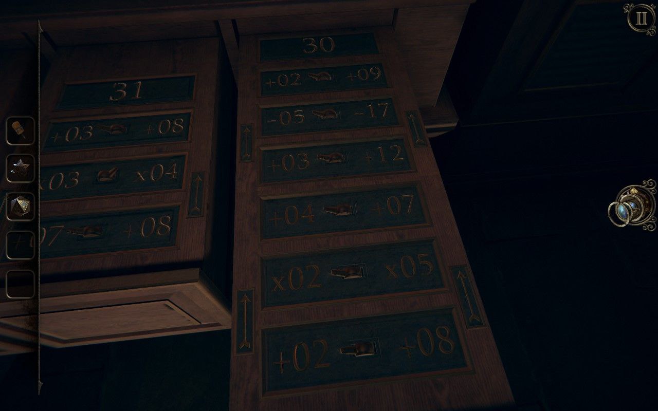 Если первая часть была историей одной шкатулки, то здесь тебя кидают из локации в локацию: крипта, корабль, кабинет, лаборатория – каждая глава со своим набором механизмов и фишек. Замена одного предмета на полноценные локации сильнее углубляет геймплей, ведь теперь мы можем перемещаться по локации и нужно соединять предметы из разных мест. Ключ из модели корабля открывает сундук на другом столе -> в сундуке – деталь, которая запускает весы -> и так далее. Это делает игру сложнее и больше погружает в исследование. Думаю именно с этой части название игры становится более оправданным.